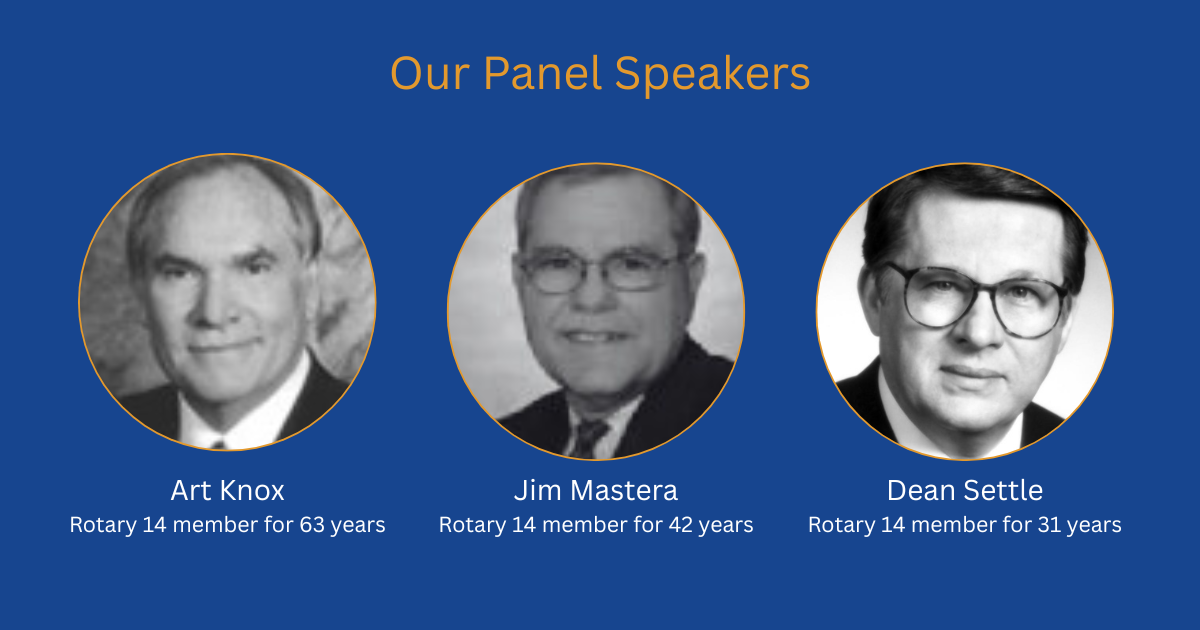 Join us for a special panel conversation featuring Art Knox, Jim Mastera and Dean Settle, guided by a special guest facilitator, as we pull back the curtain on the careers, leadership lessons and Rotary experiences that shaped them AND our Club.